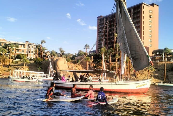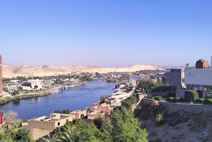 Enjoy 3 hours by motor boat on the river Nile in Aswan Egypt to visit the Nubian village and see one of their houses and be welcomed by their food and tea